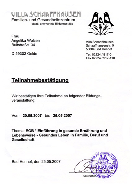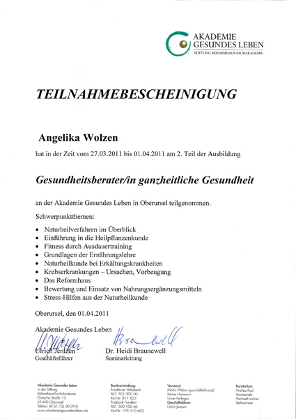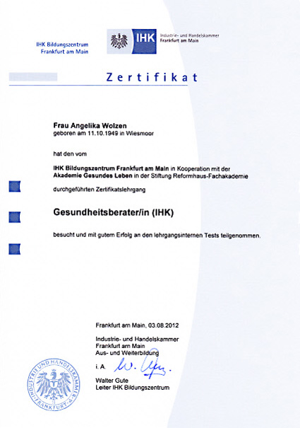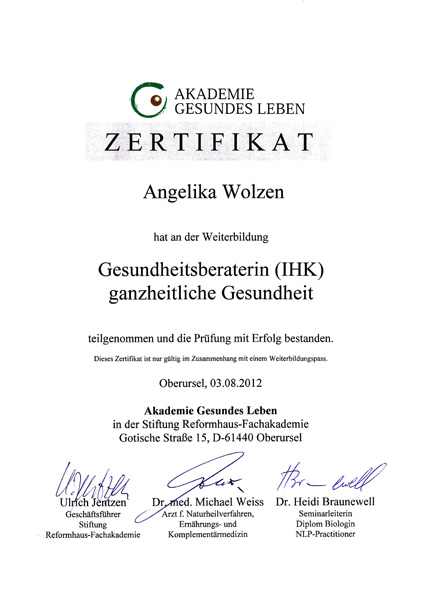 Darüber hinaus ist sie IHK geprüfte ganzheitliche