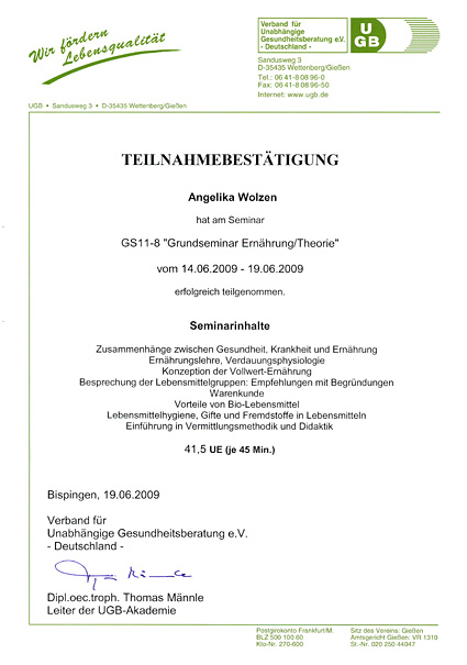 an Seminaren der Ernährungs- und Gesundheitsberatung